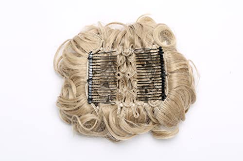 Extension clip capelli veri Pettini Estensioni dei capelli ondulati ricci disordinati Bun Piece Up Do Coulisse coda di cavallo Chignon Parrucchino Biondo sabbia & biondo candeggina