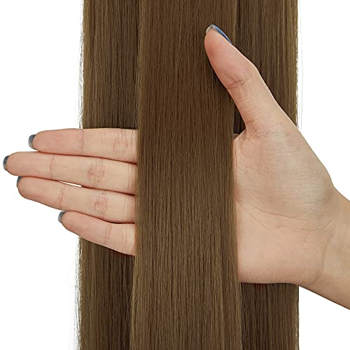 Extension per coda di cavallo da 28 cm, dritta, lunghezza avvolgente, con clip, colore marrone castano chiaro, 160 g, 12 #