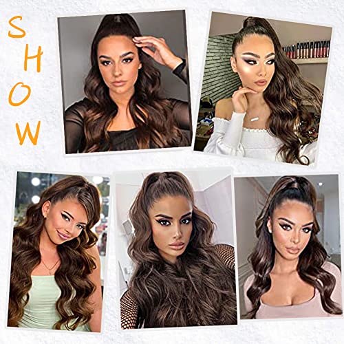 Extension per coda di cavallo, lunghe avvolte con clip, in materiale sintetico naturale, marrone, per donna, afro, circa 45 cm, 4# VD076B
