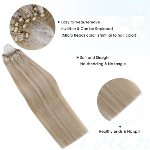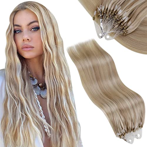 Extension Microring Capelli Veri Biondoe 50cm Micro Loop Extensiones Capelli Umani 50g #18/613 Biondo Cenere Highlighted Biondo Chiaro Micro Bead Hair Extensions Human Hair Natural 1g/s 50s