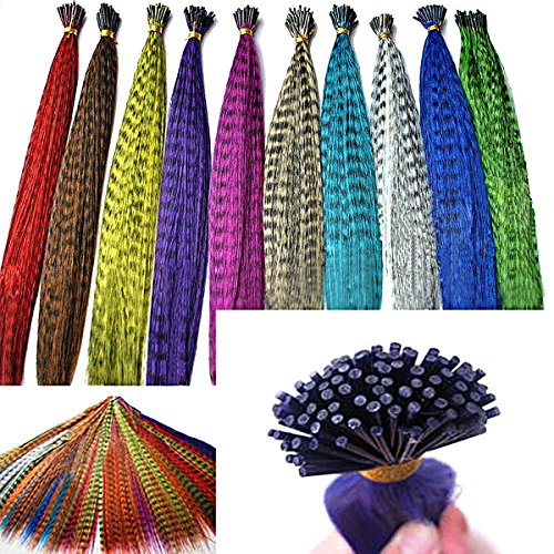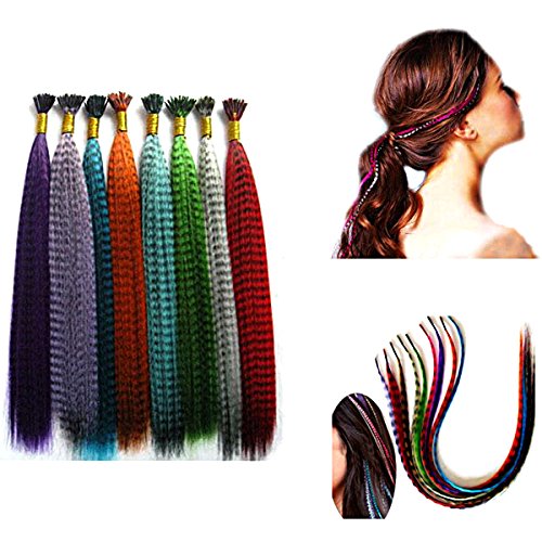 Nota bene: si tratta di extension sintetiche per capelli, colorate in modo professionale per assomigliare a piume (non sono piume vere)