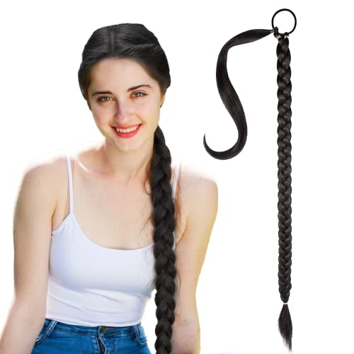 Extension a Treccia per Coda dai Cavallo, Parrucca per Estensioni dei Capelli Coda Cavallo Lunga Intrecciata, Coda Cavallo Lunga Intrecciata,Capelli a Treccia34"/86 cm (Marrone scuro)