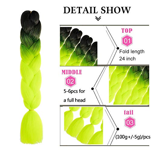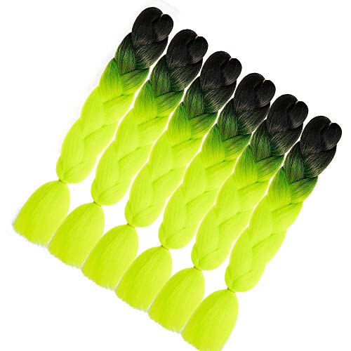 Extension per treccine africane, Ombre Braid Extension, 24 Inch Kanekalon Braiding Extensions 6 Pieces For Crochet Twist Braiding extension treccine Da nero a giallo verde