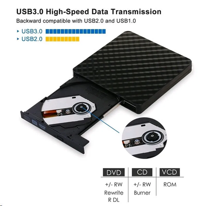 External Optical Drive Case for Mac Laptop PC USB 3.0 Optical Drive Enclosure Slim External DVD RW CD Writer Player Burner