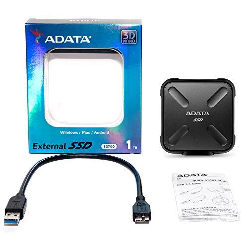 ssd externo adata 1tb sd700 2,5 black ip68, 440mb/s, usb3.1 typ c