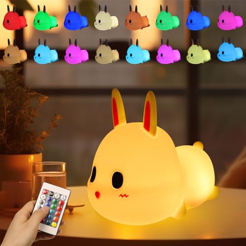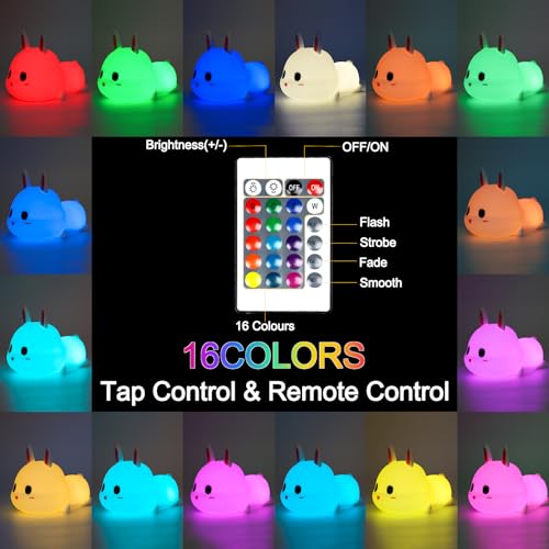 EXTFANS Luce Notturna Bambini, 16 Multicolori Silicone Lampada con Telecomando, USB Ricaricabile LED, Funzione Touch&Temporizzazione, Per Bambini Regalo Neonato Cameretta Bambino Compleanno