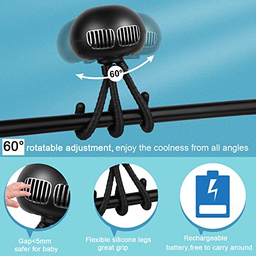 EXTFANS Ventilatore da Tavolo con Treppiede Flessibile Silenzioso, Ventilatori Portatili USB Ricaricabile, 3 Velocità per Letto, Scrivania, Passeggino, Palestra, Nero