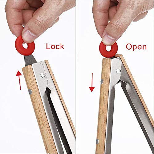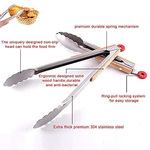 Extodry Robusta Pinze da Cucina(25cm)-Pinze per Barbecue,Facili da Pulire,Facili da Tenere,Manici in Legno Resistenti al Calore,Acciaio Inossidabile Accessori per Utensili da Cucina in Metallo