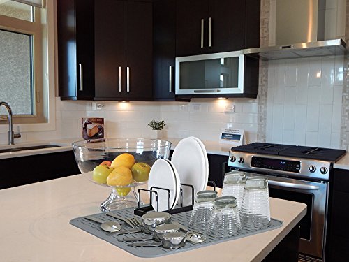Extra Grande Tappetino Scolapiatti Essiccatore in silicone Con una spazzola multifunzionale(17.7x15.7inches, nero)