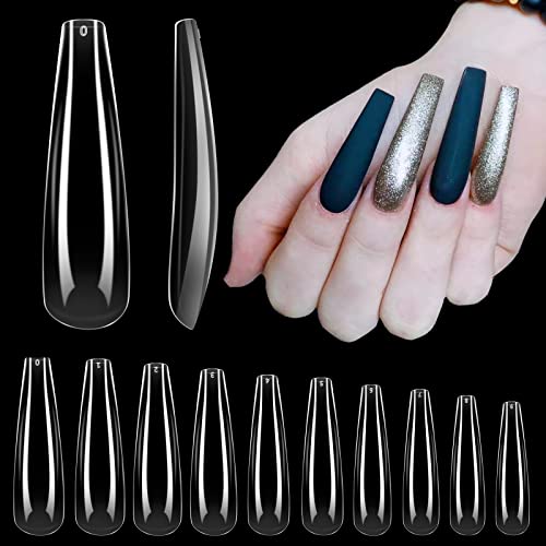 Extra Long Coffin Nails - XXL Ballerina Nails Full Cover Clear Acrylic Nails INFELING 120pcs False Fake Nail Tips with Cas...
