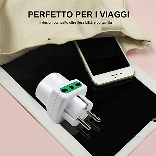 EXTRASTAR Adattatore Triplo con 2 Prese Bivalenti, 1 Presa Pluristandard e Spina Schuko 16 A, per i viaggi in Germania,Spagna,Portogallo,Austria,Grecia,Turchia Bianco,Confezione da 4.