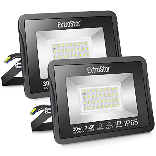 EXTRASTAR Faretti LED esterni con sensore di movimento, 30 W Patio[Classe di efficienza energetica A+] 2 confezioni (6500 K, 30 W)
