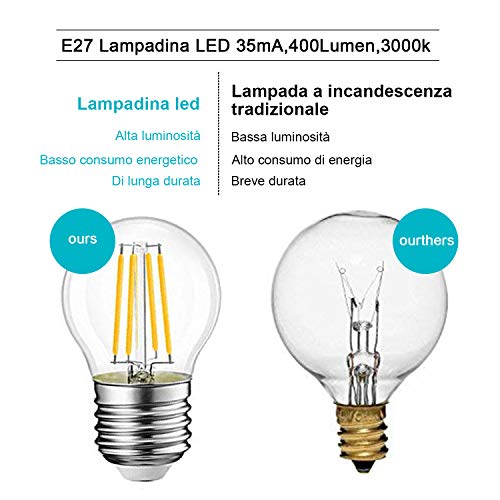 EXTRASTAR Filamento LED E27, 4W Equivalenti a 40W, 400Lm, 3000K Luce Calda,G45 Stile Vintage, Non Dimmerabile, Confezione da 10 Pezzi
