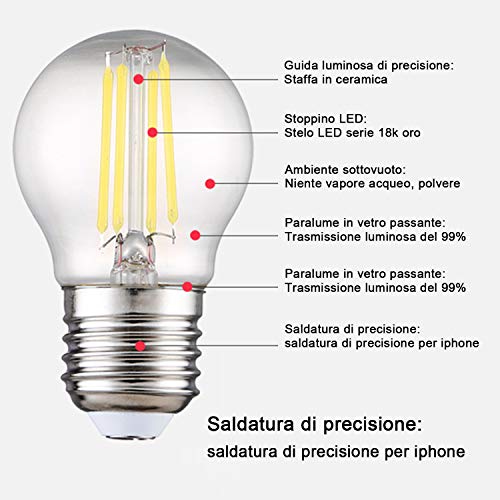 ✿4W Lampadine a LED con filamenti,4W modello standard G45 con attacco E27. La sfera trasparente che mostra i filamenti a LED gli conferisce uno stile vintage retrò ideale per tutti i tipi di ambienti.