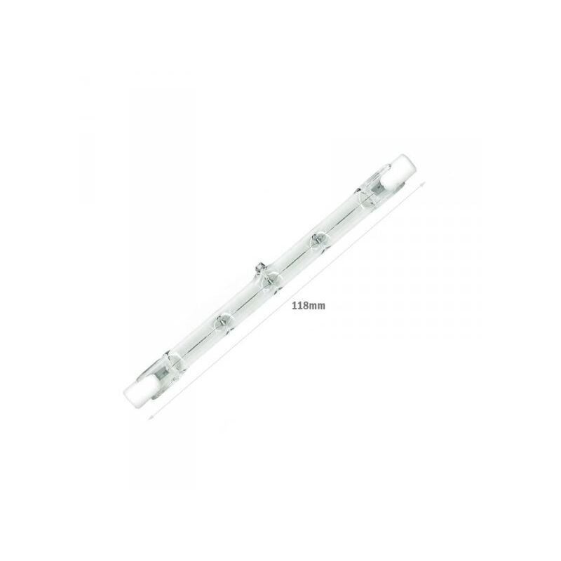Lampada Alogena Dimmerabile R7S RX7S Lineare 118mm Bianco Caldo 2800K, 120W 220V, 2215 Lumen Angolo 360°,Vita Media 2000 Ore Inserzione Valida Per 2 Pezzi Marca EXTRASTAR SKU RS7118-120W Dimmerabile SI Voltaggio 230V 50HZ Potenza 120W Luminosità 2215 Lumen Angolo Luce 360 Gradi Colore Bianco Caldo Circa 2800K Impermeabilità IP20 Temperatura Emesso < 50°C Misura(mm) 118mm Durata 2000 ore Omologazione SI, CE e RoHS Nota bene Questa è una lampada alogena
