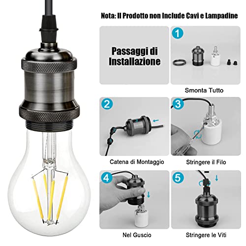 Caratteristiche: Il portalampada E27 vintage è realizzato in lega di alluminio, con una copertura in alluminio liscia all'esterno, retrò e pratico, e un resistente portalampada in ceramica all'interno.A differenza delle classiche plastiche, rende più robusto, dissipato e durevole il prodotto.