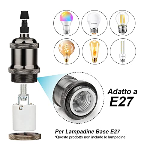 Descrizione: EXTRASTAR E27 vintage portalampada, antico e industriale, compatibile con lampadine E27 con base media, in particolare lampadine Edison vintage, adatte per progetti di illuminazione decorativa a sospensione.(Pacchetto: Pearl black × 4)