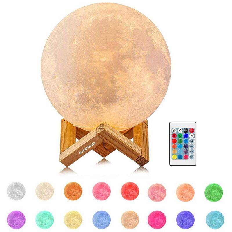 Creata con l'uso dell'avanzata tecnologia in stampa 3D, è una riproduzione perfetta della superfice lunare ripresa dalle immagini satellitari NASA. La superfice della luce notturna Luna è vivida con un tocco realistico dei crateri lunari. EXTSUD Lampada Lunare 3D Stampata Luna Piena Led Luce Notturna Caratteristiche: 2 metodi da controllare: telecomando & touch 16 colori disponibili da scegliere Design in stampa 3d, forma a luna Atmosfera piacevole, perfetto mood lights Regalo di feste compleanno per bambini amici specifiche: Materiale: pvc Colore del prodotto: bianco Colore di luce: 16 colori Lampadina: LED RGBW Potenza: 4W Tensione: DC 5V Tempo di ricarica: 2-3 ore Tempo di lavoro: 8 ore ( dipende dalla luminosità) Alimentatore: USB DC 5V Dimensioni: diametro: 15cm Contenuti: 1 x Lampada lunare 1 x Telecomando 1 x USB cavo di ricarica 1 x Base in legno 1x Manuale d'Utente