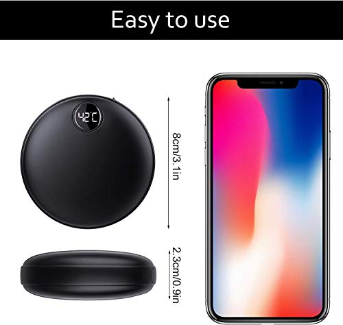 EXTSUD Scaldamani Elettrico Ricaricabile Portatile 5200mAh Power Bank Scaldino Tascabile Rotondo per Mani con LED Display 3 Temperature Regolabili per Inverno per Anziani Amici Famiglia(nero)