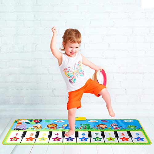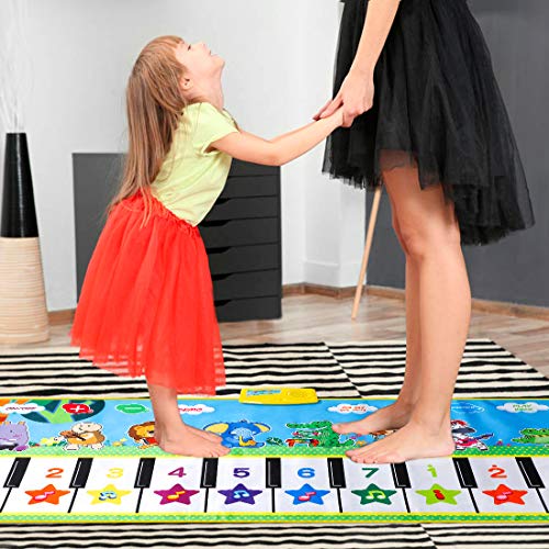 EXTSUD Tappeto Musicale per Da 2 A 3 Bambini giocare Insieme Giorno dei Bambini Grande Piano Playmat con 8 Tasti Suoni Animali E Pianoforte Strumenti Musicali Blu Tastiera 100x36cm (Grande)