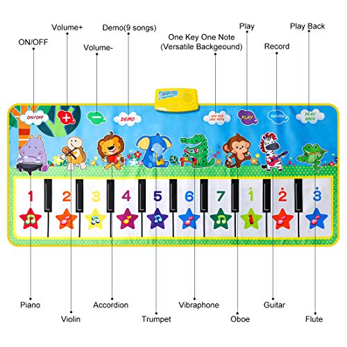 Multifunzione Tappetino Musicale: Questo tappetino per bambini ha 8 tasti funzione per pianoforte e 8 tasti di suoni animali, la musica dolce può favorire l'udito dei bambini. Il suono di tappetino per tastiera pieghevole è chiaro con effetto di luce lampeggiante, ai bambini piacerà questo giocattolo.