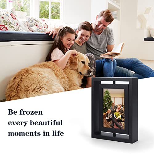 EXYGLO Set di 2 Cornici 10x15 Girevoli a 360 Gradi con Doppio Vetro, Cornice Rotante Nera in Legno MDF per Visualizzazione Verticale o Orizzontale sul Tavolo