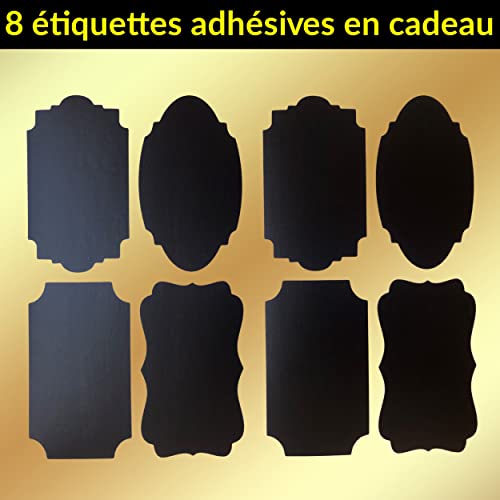 Goditi i vantaggi di un marchio francese e di un servizio clienti francesi vicino a te e reattivo! Non esitare più, questi pennarelli metallizzati EXYORE sono accompagnati da 8 etichette nere adesive gratuite ideali nella tua cucina per organizzare bottiglie e barattoli per spezie, marme