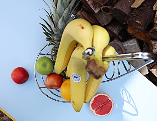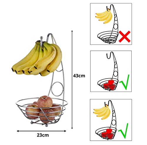 EXZACT Carrelli portafrutta/ Cesto di frutta alto e cablato da 43 cm con gancio per banane, Portafrutta con Gancio per Banane, Ciotola moderna per frutta, finitura cromo argentato