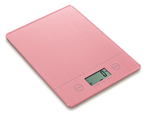 EXZACT EX9150 Super Sottile (1,4 cm) Bilancia Elettronica da Cucina/Bilancia Digitale - Piattaforma in Vetro Temperato - Batteria Inclusa - 5kg / 11lb (Rosa)