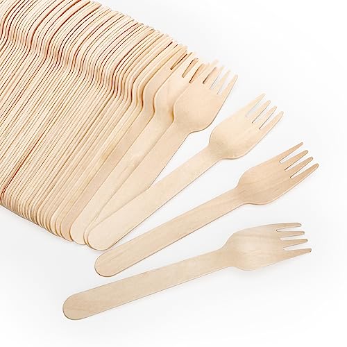 EXZACT Forchette di Legno Usa e Getta 150 Pezzi - Riciclabili - Forchette Posate in Legno per Feste x 150, Campeggio, Viaggi e Barbecue