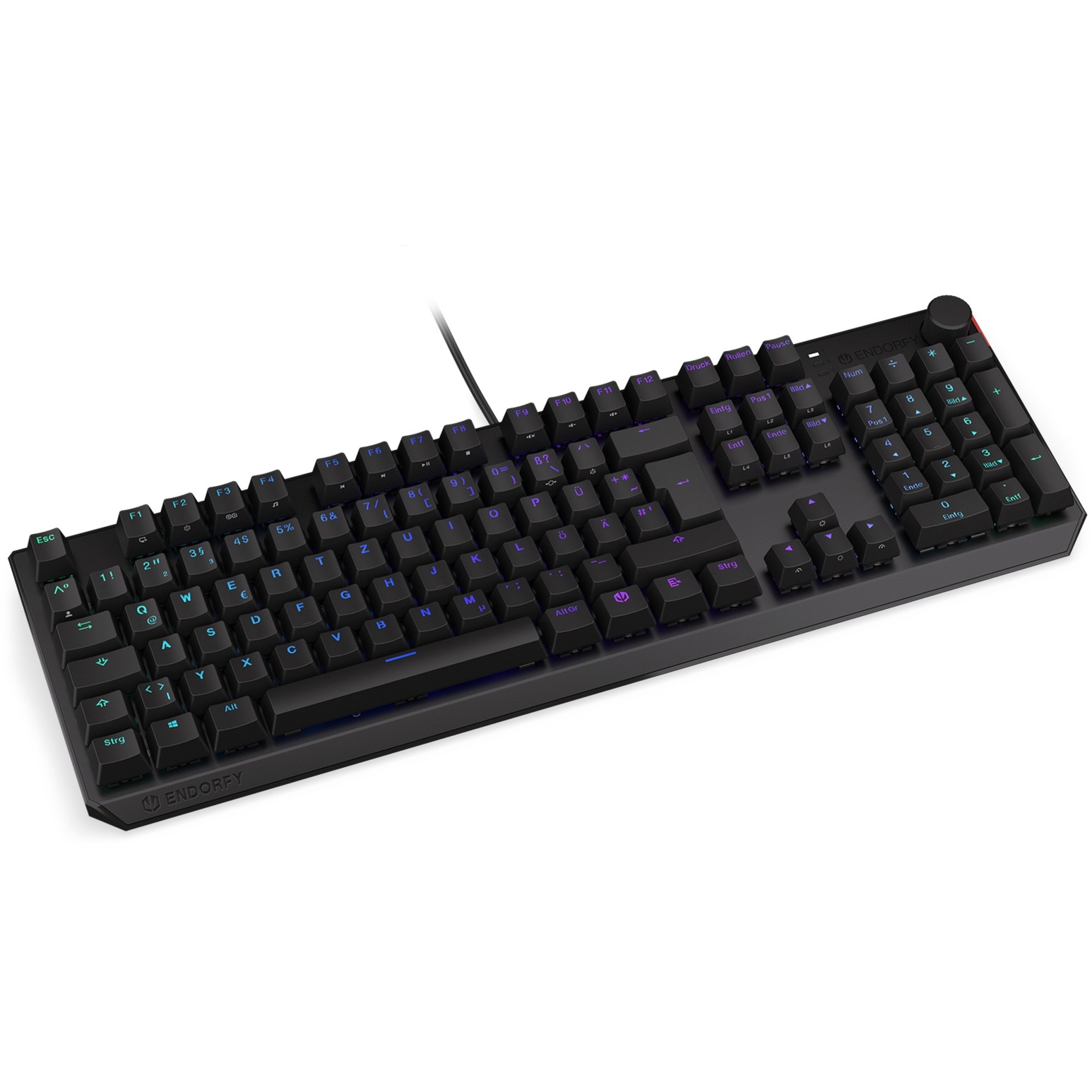 La tastiera da gioco ENDORFY Thock in formato full-size offre più punti extra nelle sfide di ricerca giornaliere. La loro custodia è rinforzata con un top in alluminio e le chiavi sono dotate di copritasti PBT di alta qualità, che sono particolarmente resistenti grazie alla tecnologia a doppio colpo e sono in attesa di essere utilizzati in combattimento. Gli interruttori meccanici Kailh Brown sono adatti per situazioni che richiedono movimenti fluidi e sottili, in grado di contenere fino a 50 milioni di battute. Il rollover a n tasti registra ogni pressione di tasti. Il thock incanta anche con una straordinaria illuminazione RGB e offre un sacco di comfort durante il gioco grazie ai piedini regolabili in altezza e alla gestione integrata dei cavi.