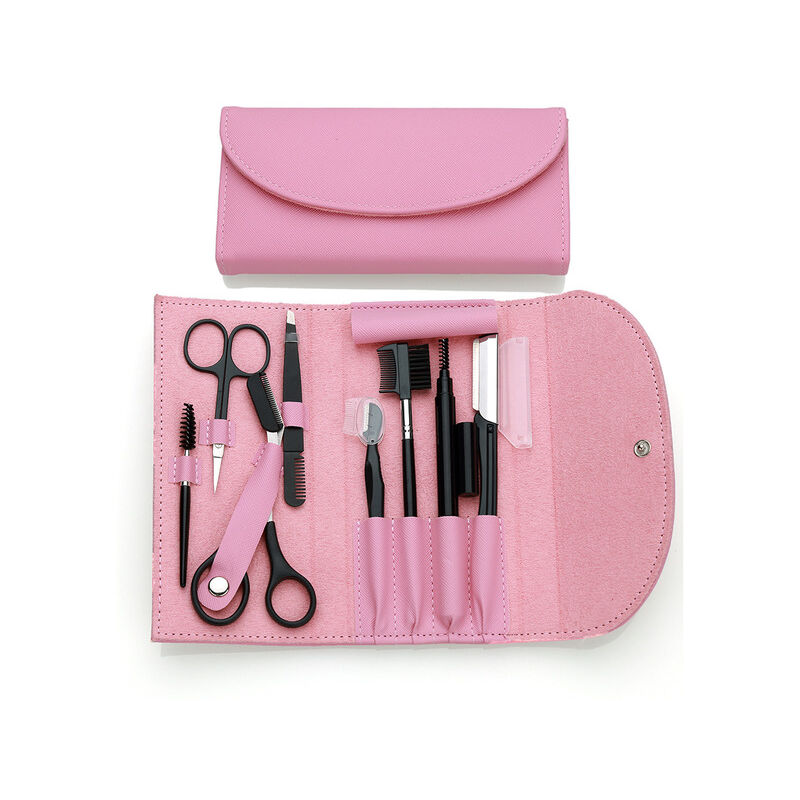 8 In 1 Man Eyebrow Trimming Kit, Portable Tweezer and Scissor Set for Eyebrow Grooming Eyebrow Care Kit for Men Women,Colore rosa