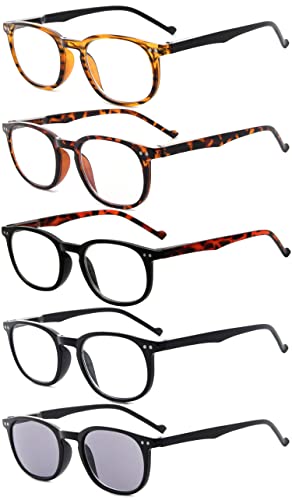 Eyekepper 5-Pack Primavera Cerniere Anni 80 Classica Occhiali da Lettura Includono Lettori di Sole +1.75