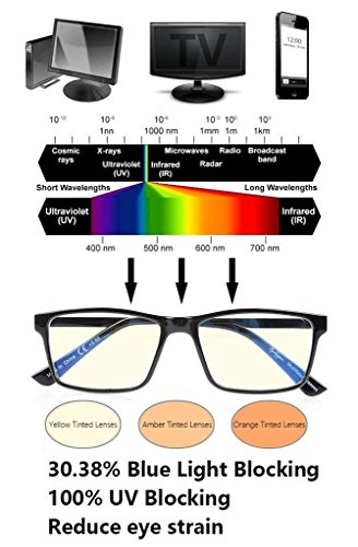 QUALITÀ TELAIO-FDA registrato Gamer occhiali e occhiali Computer, Accord con ANSI z 80.3-2010, accordo con BS EN ISO 12312-1:2013 ed EN14139:2010, Accord con AS / NZS 1067:2009, montatura in plastica di qualità. Non più trascorrere notti dormo dopo aver utilizzato un Computer per lunghi periodi di tempo