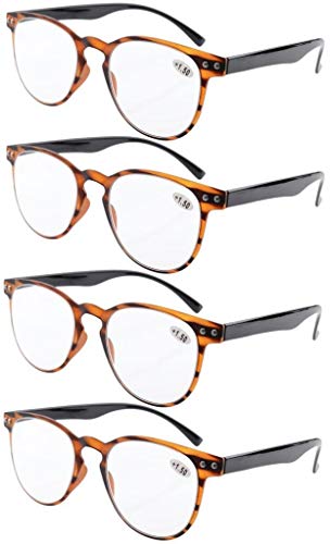 EYEKEPPER Occhiali da lettura: confezione da 4 a 1 prezzo basso, i set sono disponibili in 1 potenza a scelta. Queste lenti non sono miste. Lenti acriliche e otticamente corrette. Montatura rotonda, bella sul viso. Telaio flessibile TR-90, aiuta gli occhiali a adattarsi al tuo viso. Lenti colorate, ideali per la lettura all'aperto