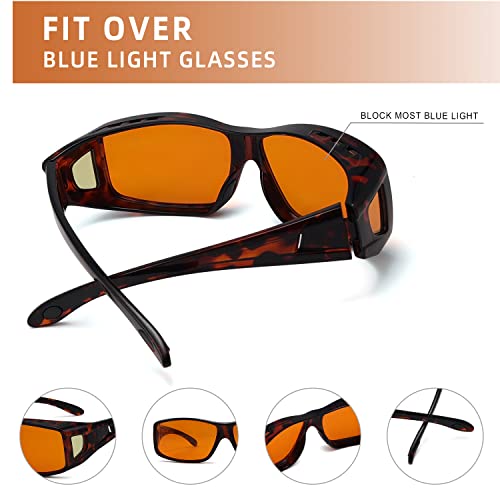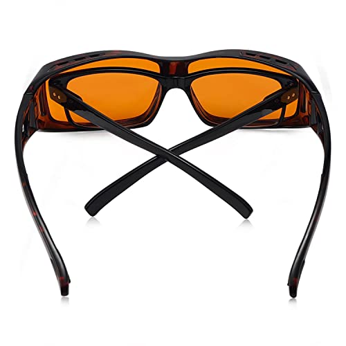 Eyekepper copri occhiali da computer filtri 100% luce blu di monitor, Sovraocchiali per PC con lenti ambra da uomo donna, Colore tartaruga