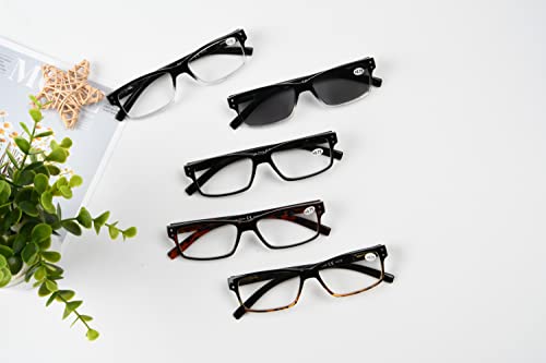 Eyekepper 5 Paia Occhiali da Lettura per Uomini Donne Montatura Plastica Cerniere a Molla Include Una Lenti Grigio per Sole (Misti, 2.50)