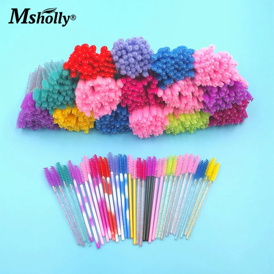 Eyelashes Wands Brushes 50pcs/pack Make up Colorful Eyelash Extension Disposable Eyelash Tools Diamond Handle Mascara Wands