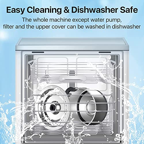 Fontanella per Gatti Silenziosa con Grande Capacità da 2,5 Litri: Non c'è bisogno riempire spesso l'acqua. Anche se sei in viaggio d'affari o viaggi per 5~7 giorni, il distributore acqua gatti può fornire ai tuoi animali domestici acqua sufficiente e pulita. Con la pompa per fontana ultra silenziosa (