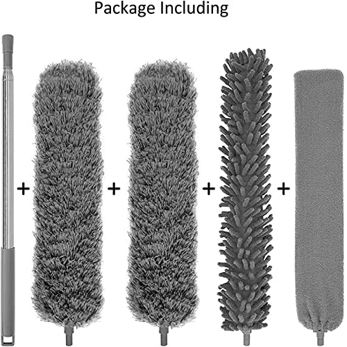 Set di Spolverino per Polvere: include un asta telescopica in acciaio inox estensibile(76-254 cm), due spazzola per polvere in microfibra, una spazzola per polvere in ciniglia e una spazzola per fessure
