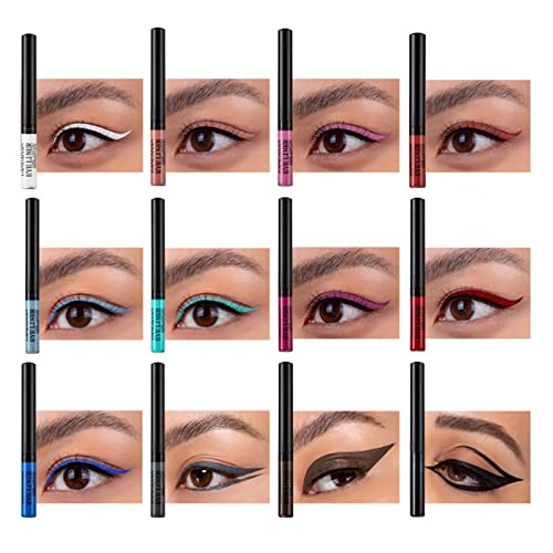 Eyeliner Colorati, MKNZOME 12 Colori Eyeliner Matte Eyeliner Waterproof Lunga Durata Impermeabile Brillantini Make Up per Trucco Cosplay della festa nuziale