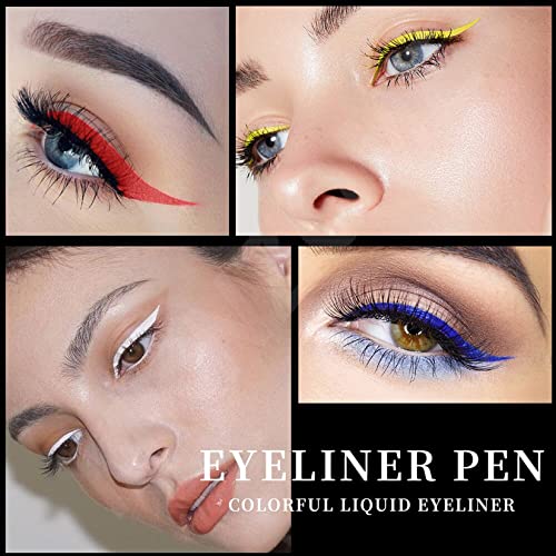 【EYELINER COLORATI】 --MKNZOME Eyeliner Waterproof è dotato di 12 colori vivaci e popolari, tra cui blu, bianco, rosso, rosa tra cui scegliere, questi incredibili colori alla moda ti aiutano a essere l'eye-catcher in ogni occasione. Formula ad asciugatura rapida e la punta in feltro ad alta precisione rendono il nostro eyeliner più facile da far scorrere e facilitano la creazione di linee lisce e precise senza saltare o tirare.