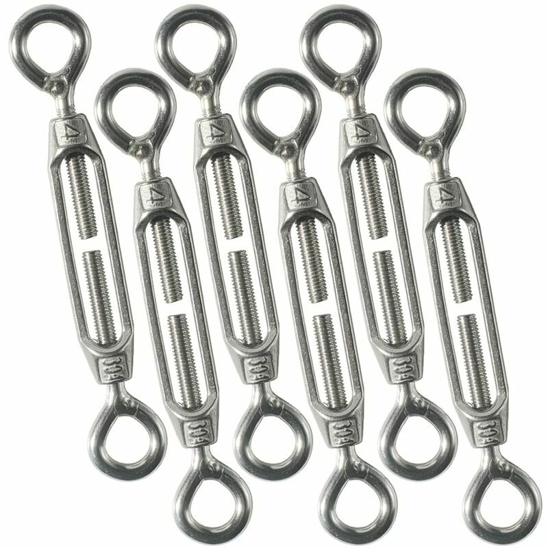 Realizzato in acciaio inossidabile, resistente e antiruggine, funziona con magneti. Adatto per cordoncini, per ombrelloni, tende e varie applicazioni di fissaggio di funi. Tipo M4, uno dei tipi più comuni di tenditori. Peso: 34,2 g/pezzo Quantità di spedizione: 6 pezzi Colore del prodotto: argento Specifiche: M4 su entrambe le estremità (come mostrato nell'immagine) Prodotto di buona qualità