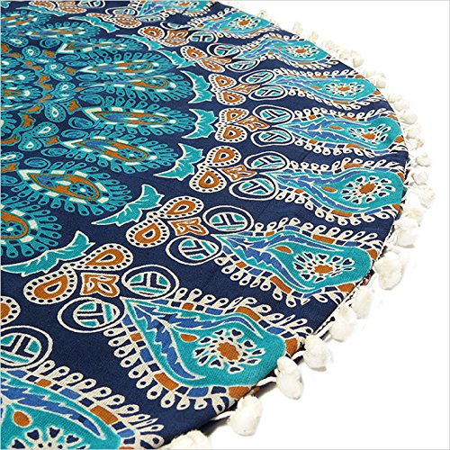 Eyes of India - Federa per cuscino da meditazione, motivo mandala, blu, 81,3 cm, rotondo, colorato, decorativo, stile bohémien, stile bohémien, chic, pouf indiano, pouf ottomano, fatto a mano