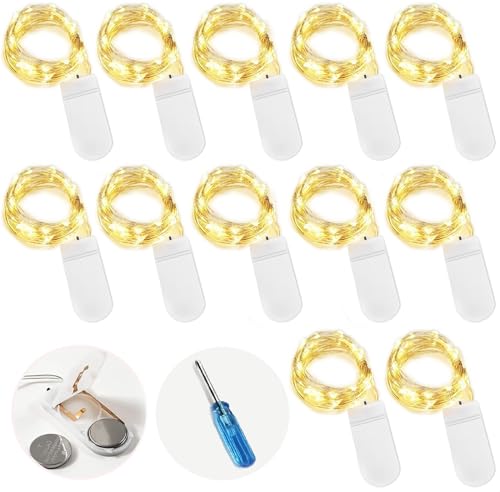 Eyesgood 12 pezzi Lucine LED Decorative a Batteria, Luci di Natale, 2M 20 LED Luci Natale Interno Esterno, Luci Albero Natale, Luci Albero di Natale, Luci LED Albero di Natale Natalizie Camere Letto