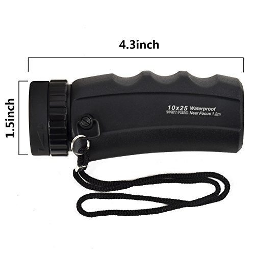 Eyourlife Telescopio Monocolo Binocolo Monoculare Mini Cannocchiale Zoom Ingrandimento 10X25 HD Ultra Chiaro Ottico Verde Film Lente Prisma BAK4 Regolabile Impermeabile Professionale per Bird Watching Campeggio Caccia Viaggi Concerto - Nero