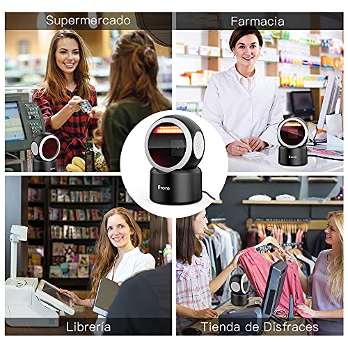Eyoyo Scanner per codici a barre da scrivania, 1D QR Lettore di codici a barre Omnidirezionale Mani Libere con Rilevamento Automatico Supporta Scansione Schermo per POS PC