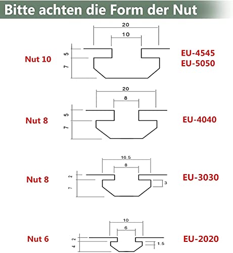 【Nota】I prodotti EYPINS sono adatti per profili in alluminio standard europei. I profili in alluminio personalizzati potrebbero non essere adatti e richiedere hardware personalizzato.