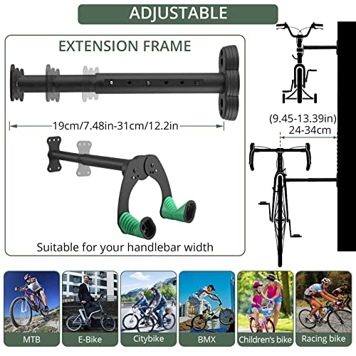 EYPINS Porta Biciclette da Muro,Ganci per Biciclette a Parete,Angolazione e Distanza dalla Parete Regolabili,con velcro, per Garage/Casa/Magazzino/Parete