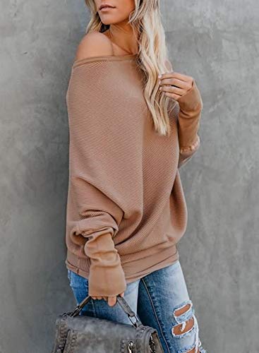 Eytino Maglione da donna girocollo manica lunga allentato maglione lavorato a maglia maglione oversize tunica top (S-2XL), Y Khaki, S
